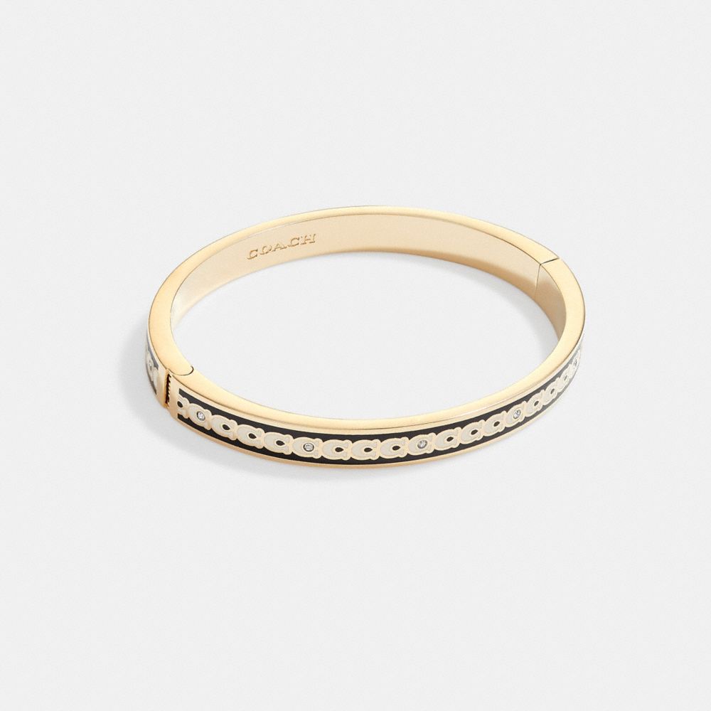 Crafted of polished smooth enamel, this colorblock bangle features our Signature for a heritage touch. Wear the slim design alone or stacked with other bracelets for an effortless layered look.