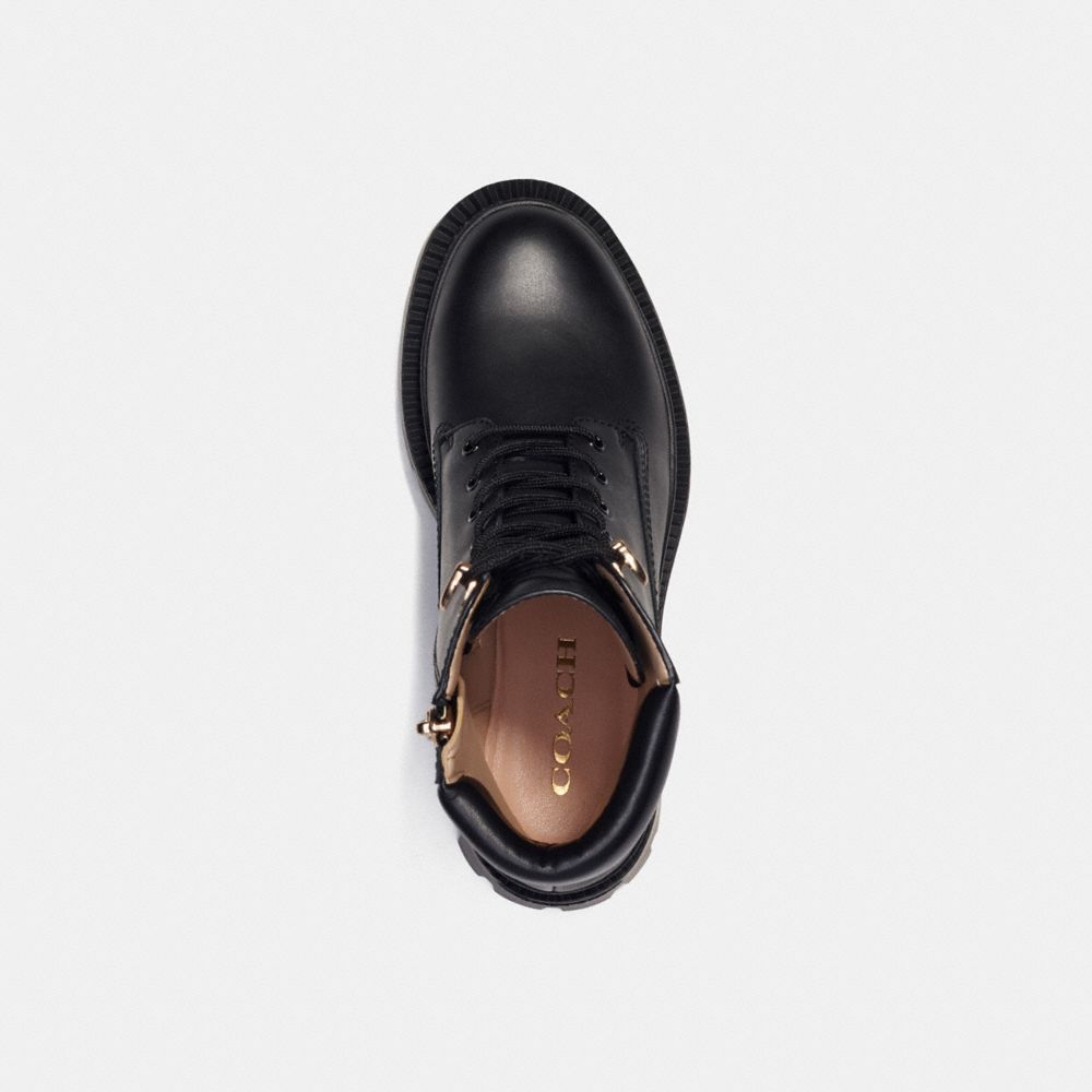 Ready to stomp the streets in style, the Ainsely bootie features cushiony memory foam padding for all-day comfort and a rubber platform lug sole for great traction. Crafted of smooth leather, it’s finished with our Signature speed hook hardware and our Coach Storypatch at the back heel for an iconic touch.