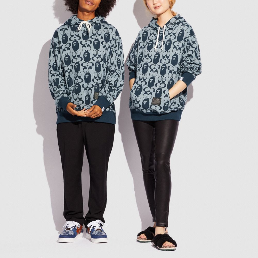 Coach collaborates with the cult-favorite streetwear label BAPE on a playful, animated collection that combines our New York attitude with the Tokyo-based brand's bold, rebellious style. This sporty cotton hoodie features a disruptive take on our Signature featuring BAPE's trademark Ape Head. It’s finished with a kangaroo pocket, a special Storypatch and soft banded trim.
