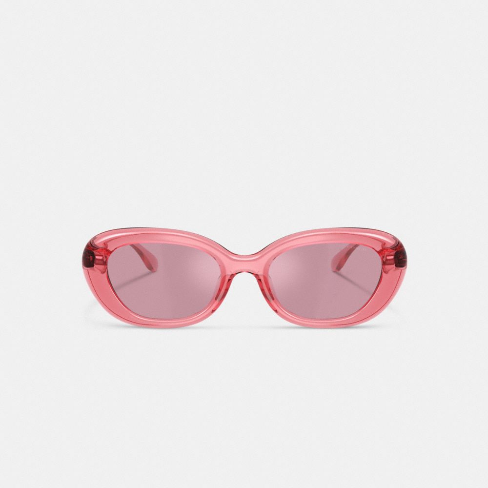COACH®,C Hardware Round Sunglasses,Cat Eye,Logo,Integrated Nose Pads,Casual,Pink,Front View
