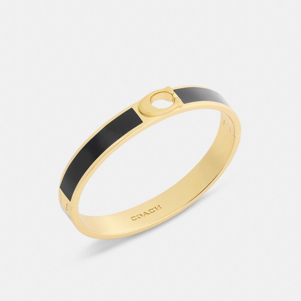 This enamel hinged bangle features our Signature for iconic Coach style. Wear it alone or stack it with other bracelets.