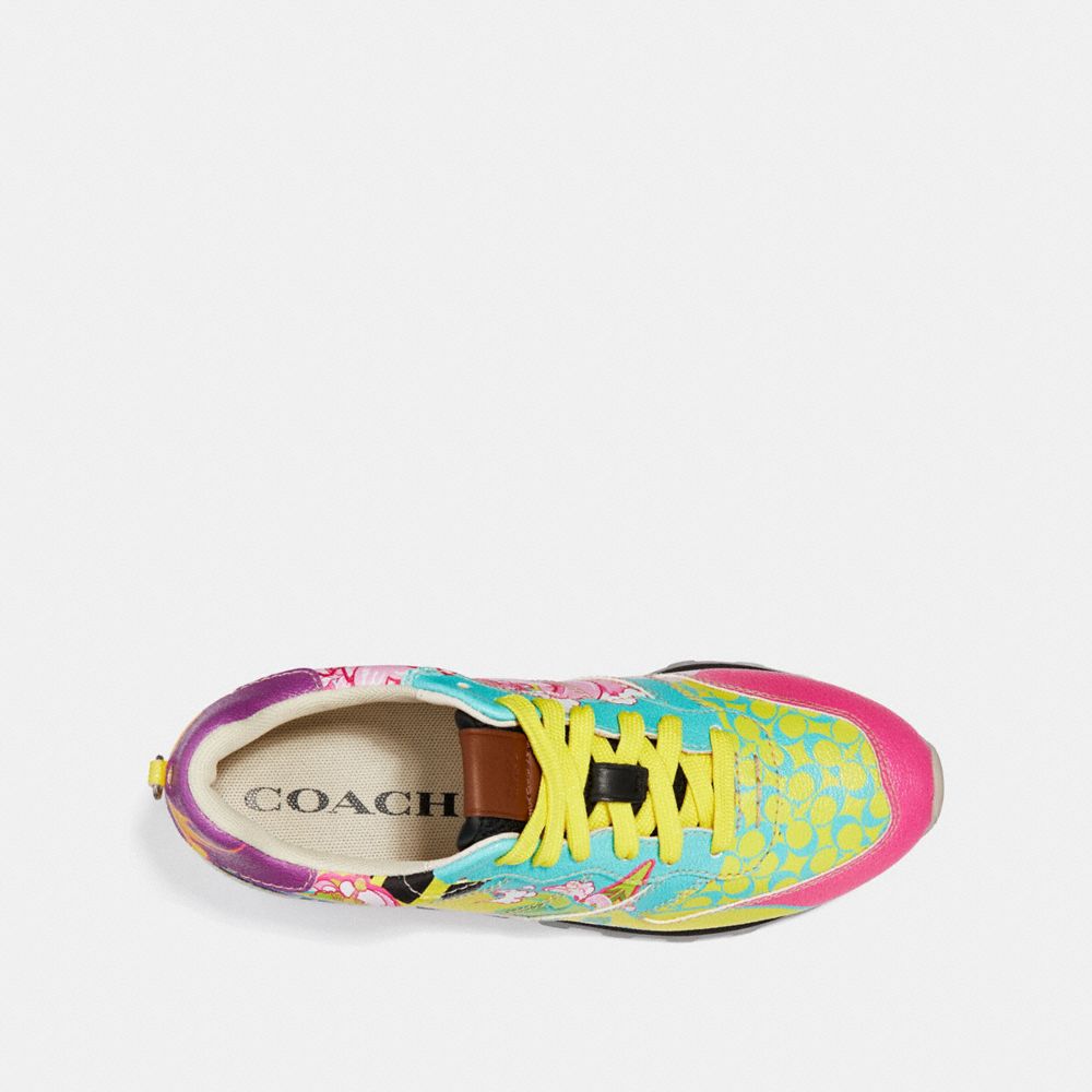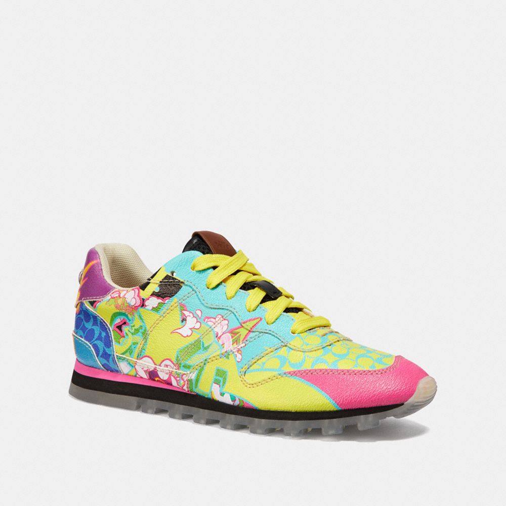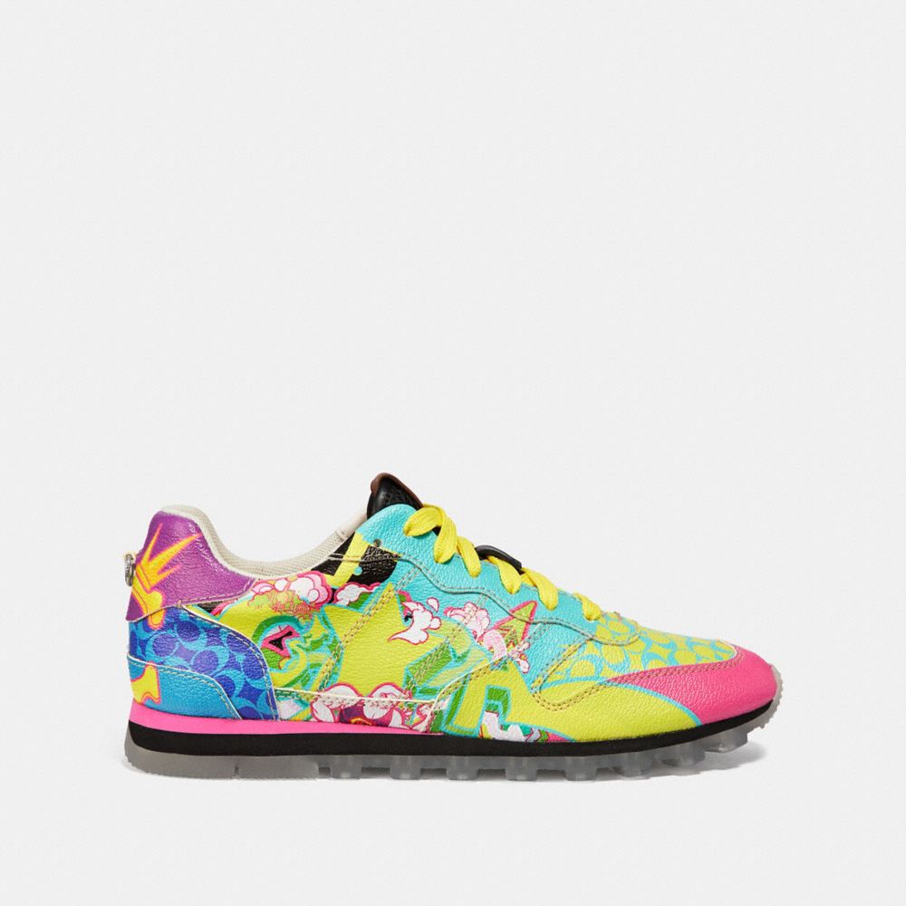 For this limited edition footwear collection, Coach collaborates with five global talents to create dynamic original artwork featuring our Signature. Crafted of sturdy canvas, our 1970s-inspired C118 running shoe features a colorful animated graphic illustration by the visual artist Dong Jin of China.