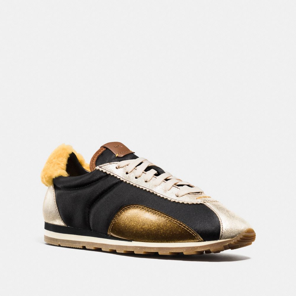 A staple of early Hip-Hop culture, the retro runner gets modernized. Smooth satin, metallic leather and a pop of shearling are featured on the sleek silhouette. Our most lightweight sneaker yet, it’s designed with more filling around the toe so that its soft shape won’t collapse.