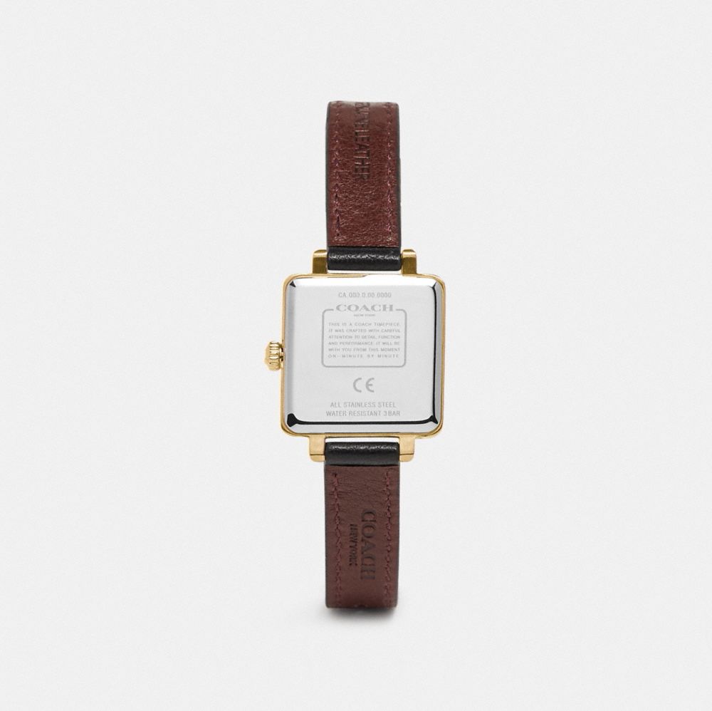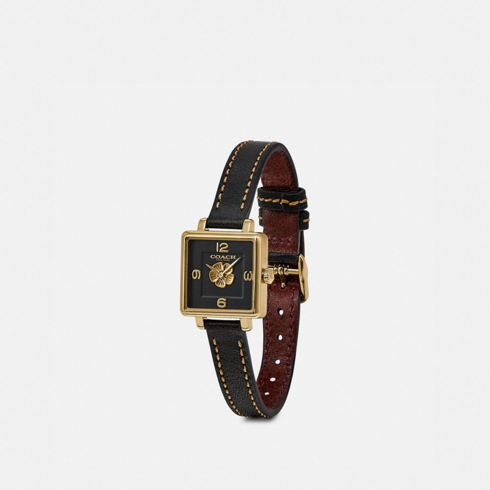 This modern watch combines the timeless look of a square face with our signature Tea Rose motif. It's finished with a slender smooth leather strap.
