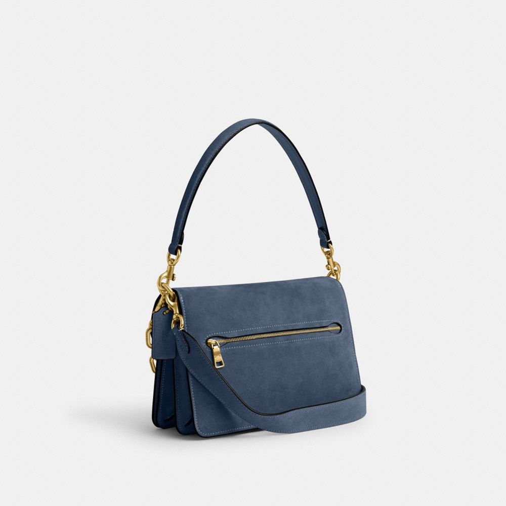 A modern take on an archival 1970s Coach design, our structured Chain Tabby shoulder bag is crafted of velvety suede. Finished with our Signature hardware for an iconic touch, the compact style has space for all the essentials, inside multifunction organizational pockets and a convenient outside zip pocket for easy access items. The versatile design is finished with three detachable straps to carry by hand, wear snug on the shoulder with the elegant stitched chain-link strap and short leather strap or go hands-free with the long leather crossbody strap.