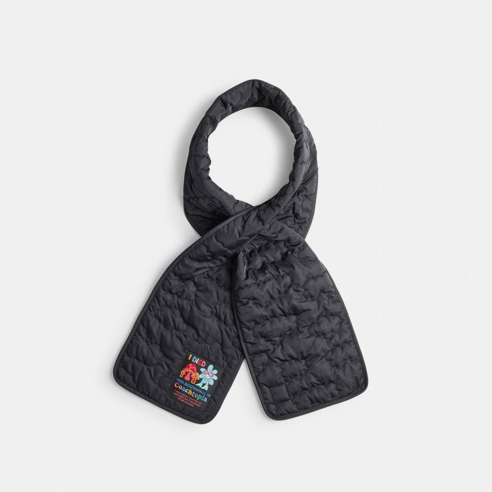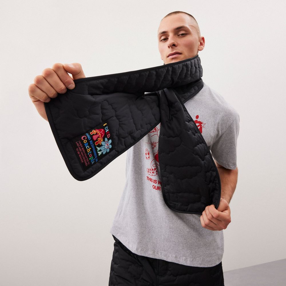 Wrap it up: this quilted scarf is a perfect way to escape the winter cold. Crafted with 100% recycled PET plastic (rPET), it features dreamy cloud embroidery and is finished with a classic Coachtopia patch.