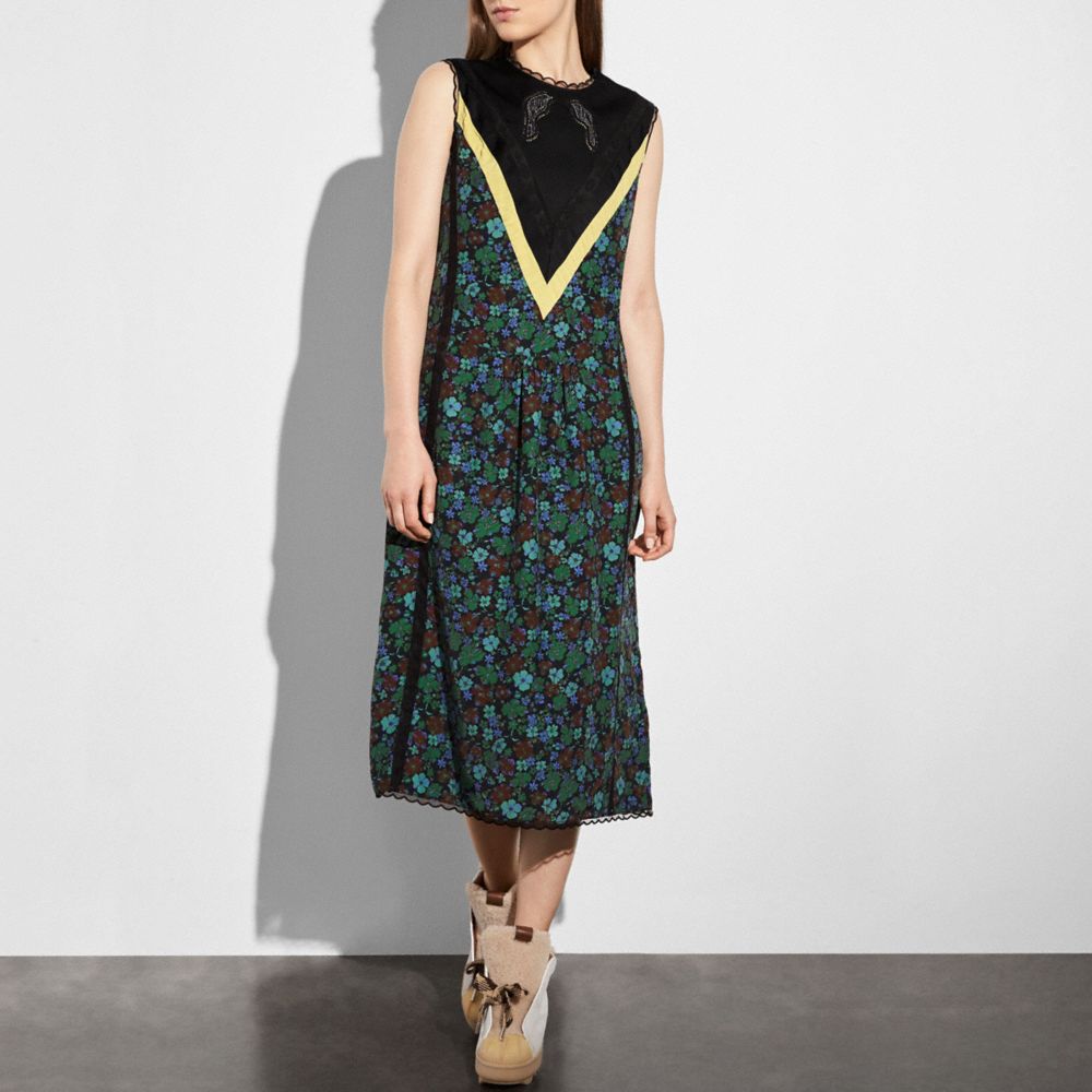 Daisy Print Sleeveless Varsity Dress