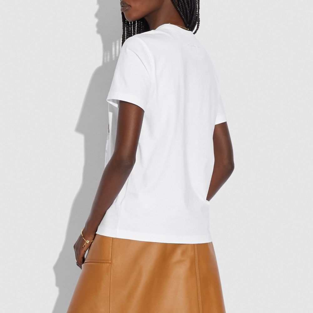 Crafted of certified organic cotton made without the use of harmful chemical fertilizers and pesticides, this T-shirt is part of Coach Forever, a collection inspired by our commitment to rethinking and reducing our impact on the planet. The classic-fit style features an abstract dreamscape of colorfully embroidered doodles and “diary” words.