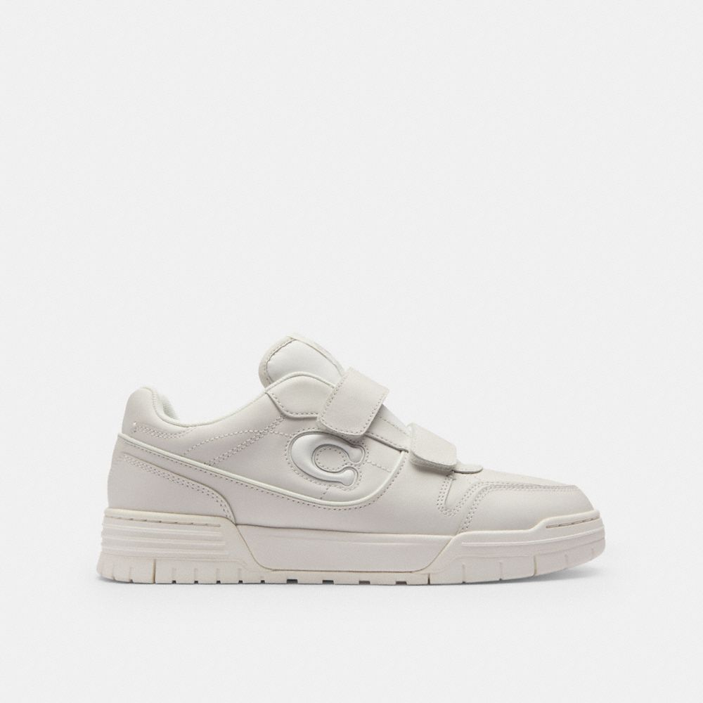 Our Coach Soho Sneaker is inspired by the courageous free spirit of our hometown New York City and built to keep pace with life on the go. Crafted of smooth leather with two sporty Velcro strap closures, it features a lining made with 100% recycled polyester and a midsole that contains at least 28% bio-based content, created through a process that uses renewable sources in place of fossil-based. The comfortable style is finished with a grooved rubber outsole detailed with a map of Manhattan.