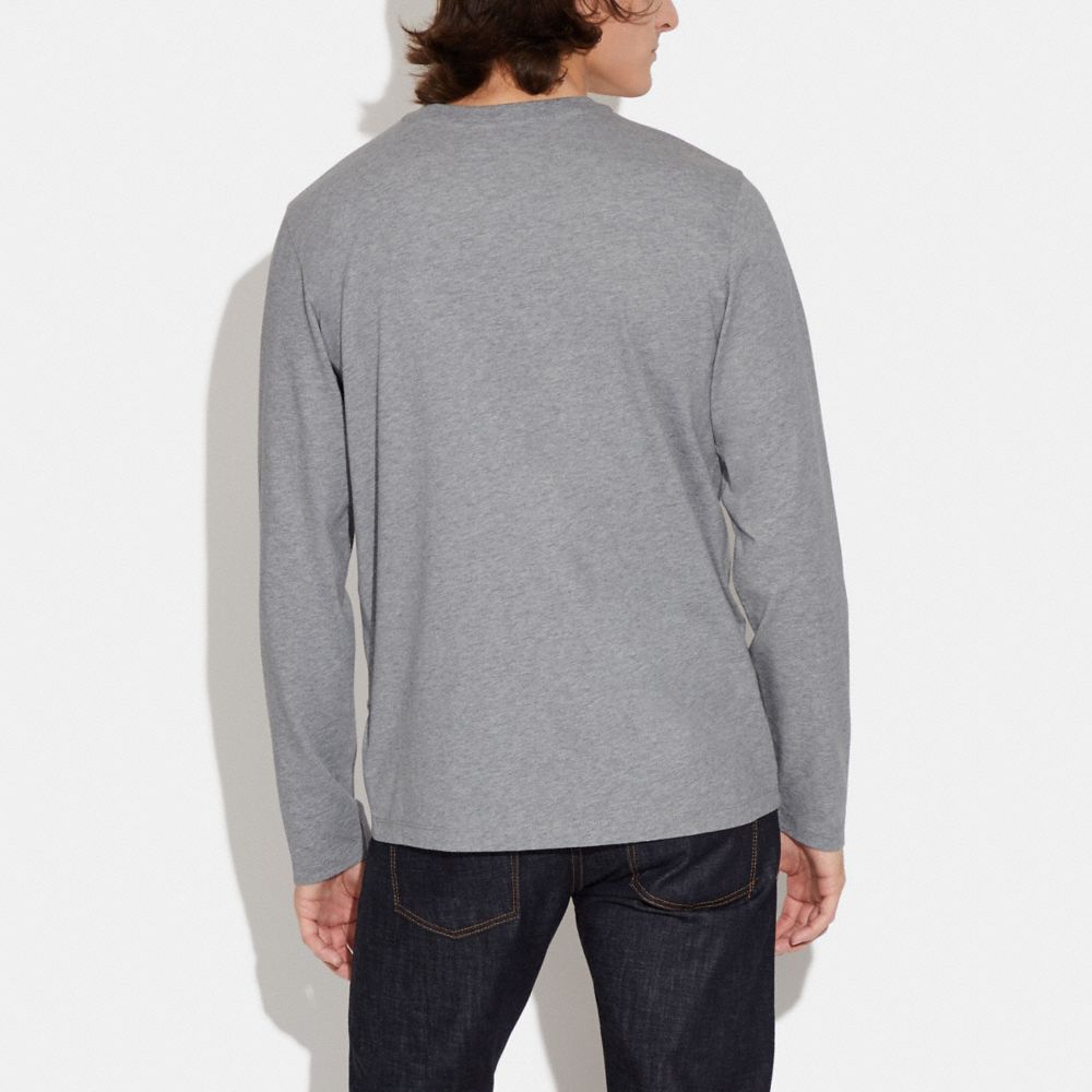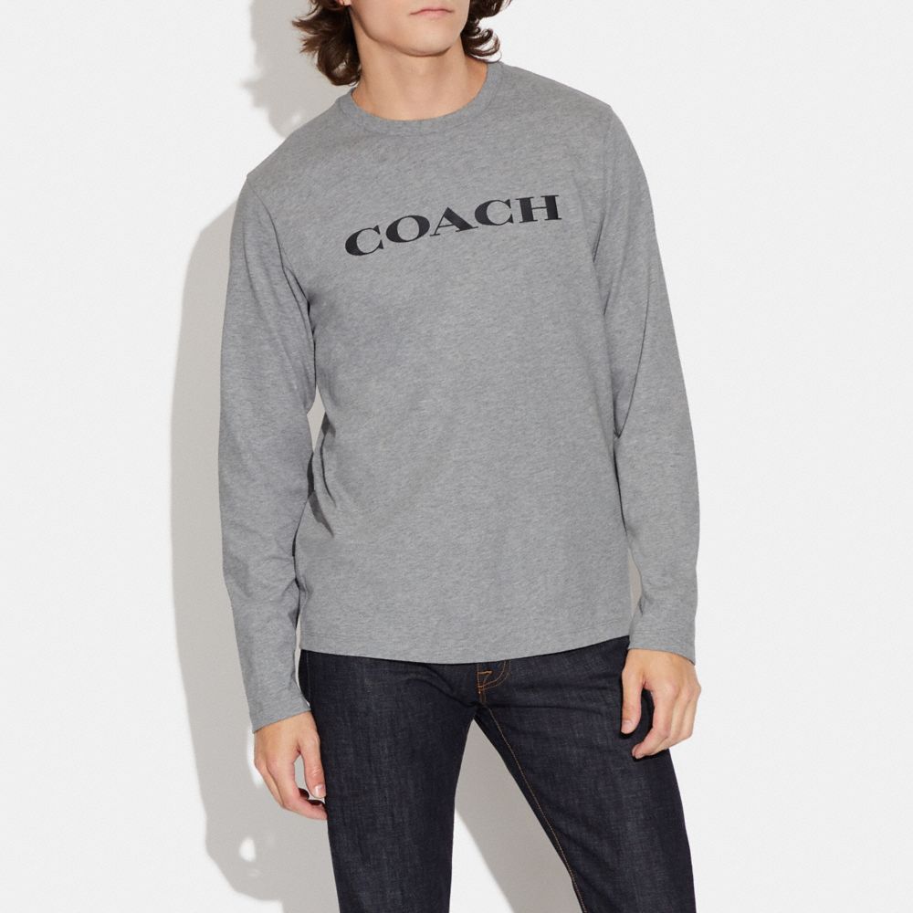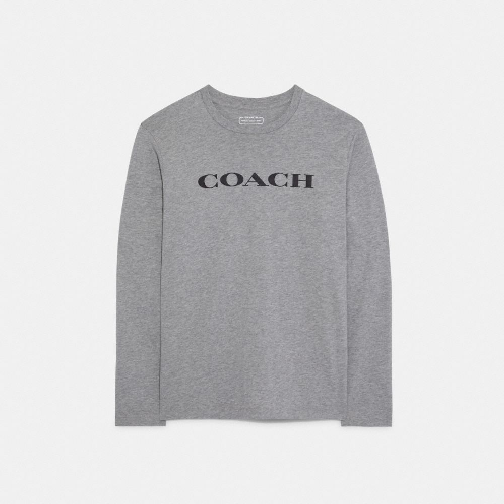 COACH®,Essential Long Sleeve T-Shirt In Organic Cotton,Organic Cotton,T Shirt,Logo,Word Embellishment,Casual,Gray,Scale View