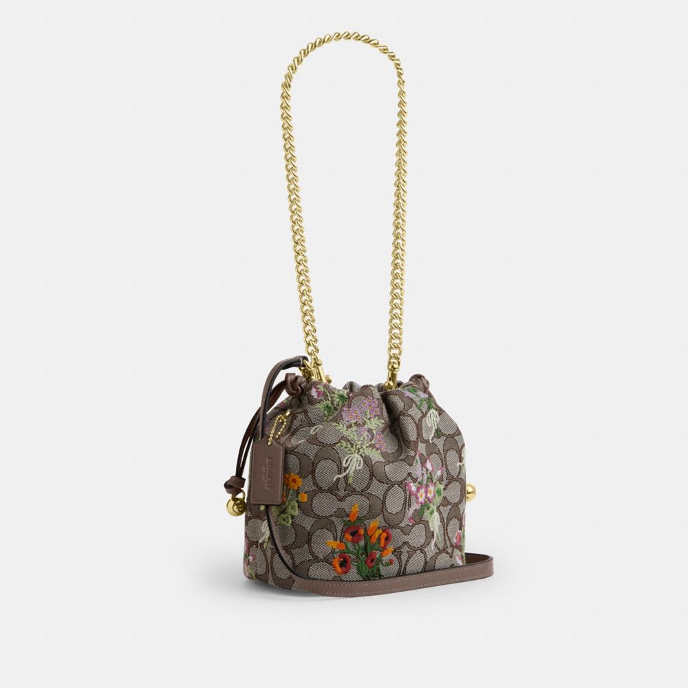 Faye Mini Drawstring Bag In Signature Jacquard With Floral Embroidery