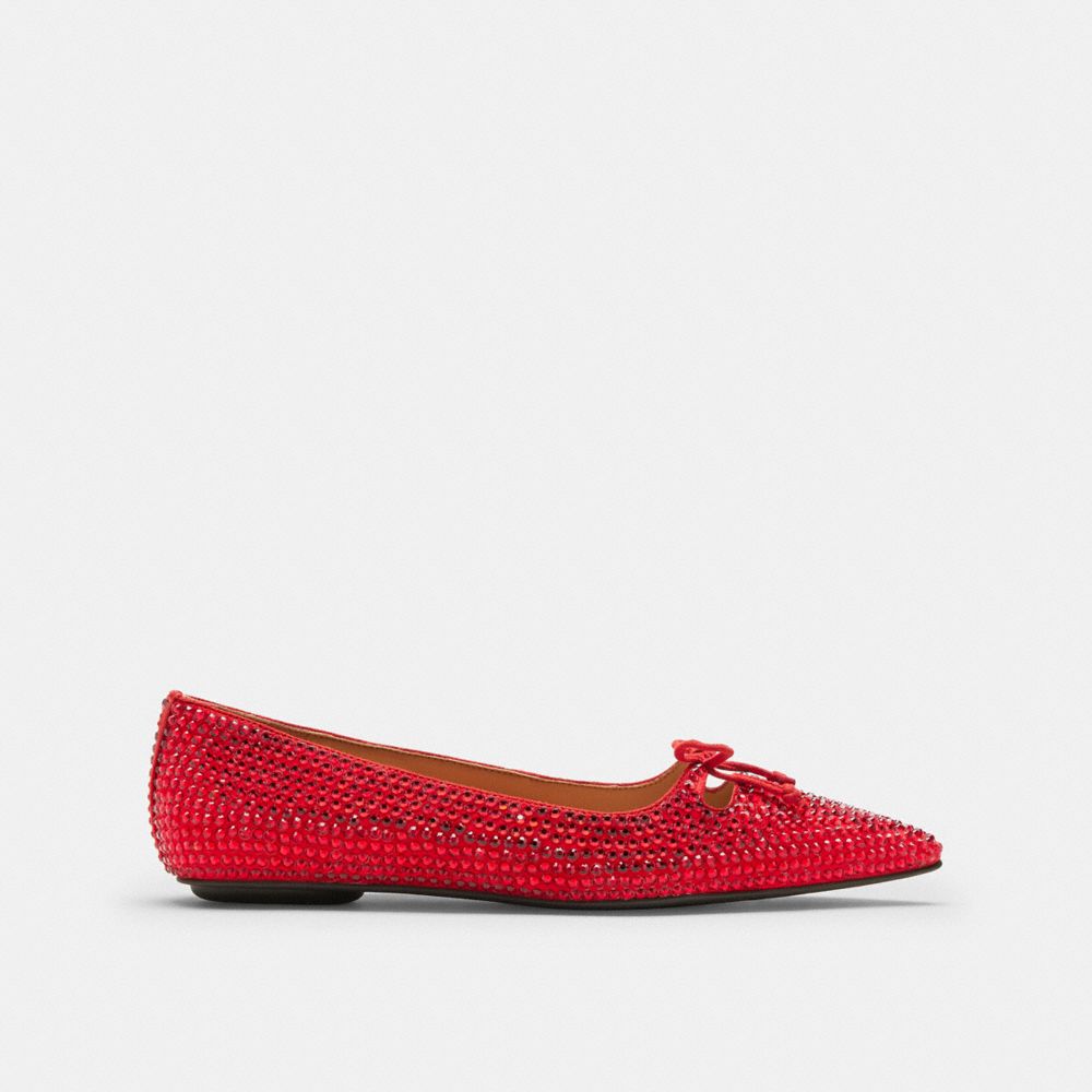 COACH®,Flat With Crystals,Rubber,Leather,Lining Suede,Thermoplastic Rubber,Suede,Lining Leather,Flats,Crystal,Cut Out,Bow,...,,Angle View