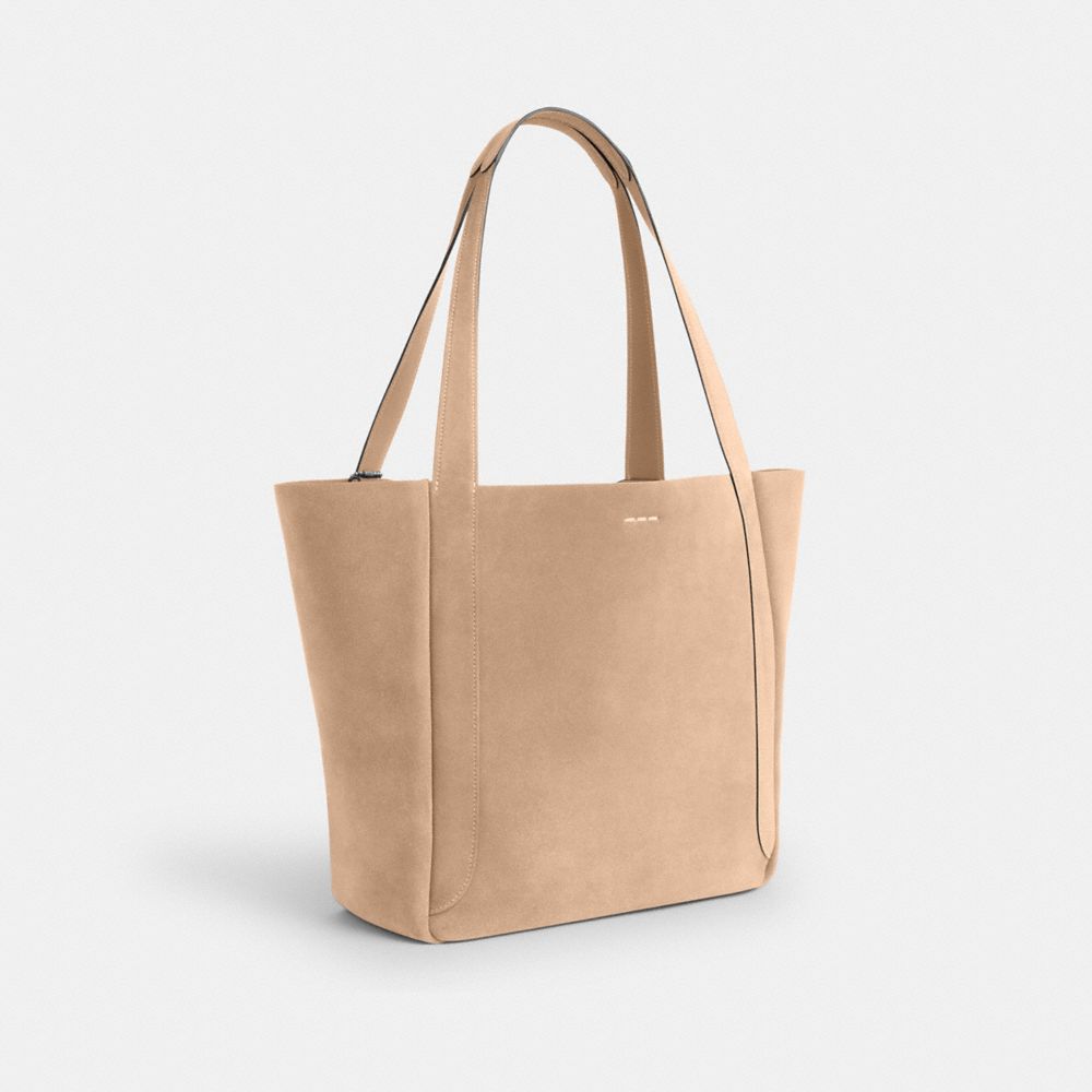 COACH®,Hadley Tote Bag In Suede,Leather,Tote,Logo,Metal,Casual,Beige,Angle View