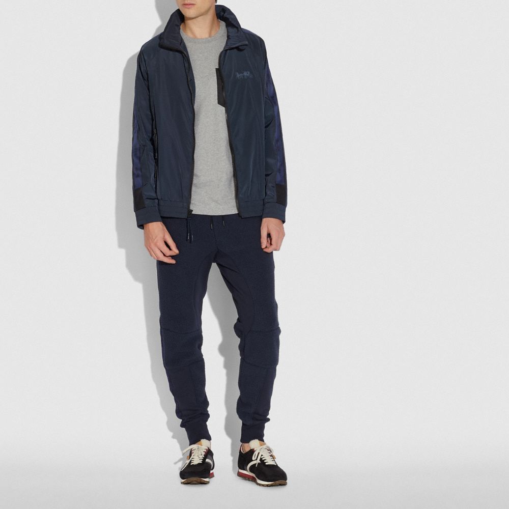 A perfect travel companion, this water-resistant nylon windbreaker has a stow-away hood and high stand collar to protect from the elements. Finished with sporty contrast trim featuring our iconic Horse and Carriage motif, the ultra-lightweight style packs neatly into its crossbody pouch for easy storage or transport.
