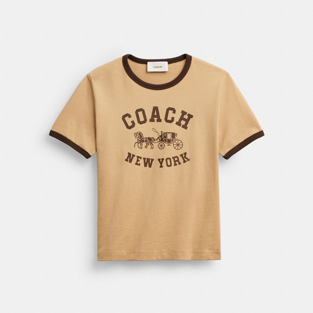 Featuring our Coach graphic and iconic Horse and Carriage motif front and center, this classic-fit ringer T-shirt is finished with contrast binding trim. Crafted of organic cotton made without the use of harmful chemical fertilizers and pesticides, it’s inspired by our commitment to rethinking and reducing our impact on the planet.