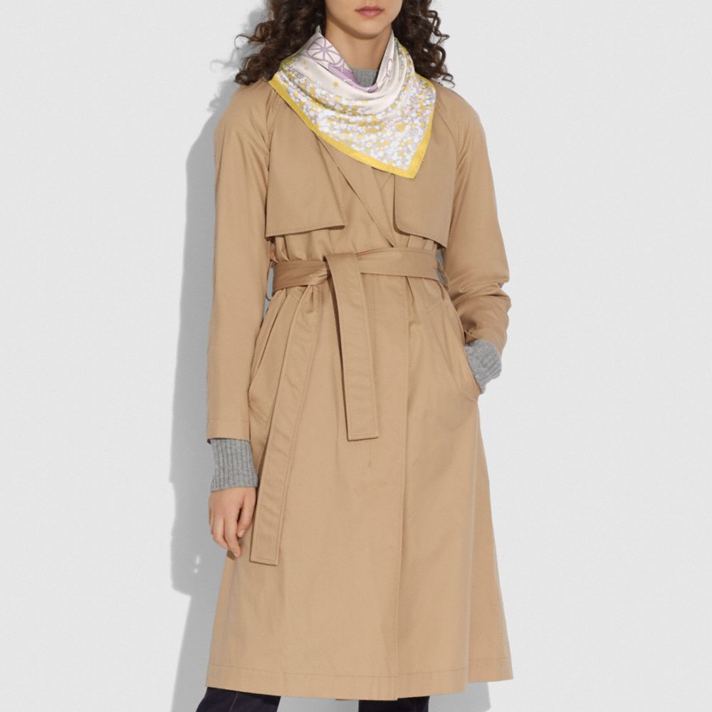 Crafted of lightweight silk, this square scarf features the iconic Coach Horse and Carriage front and center. It’s finished with our prairie-inspired Tea Rose motif in a scattered confetti print.