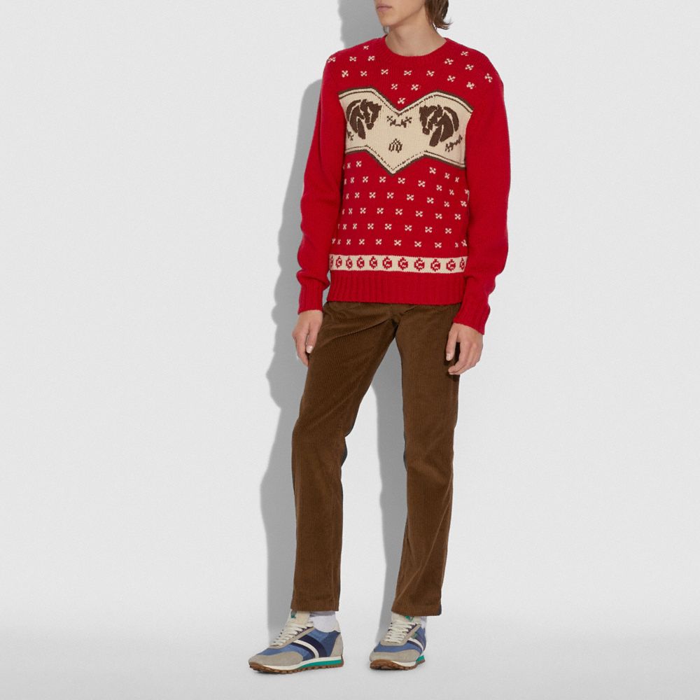 Bring classic Scandinavian après-ski style to the city streets with this intarsia-knit wool sweater. The relaxed-fit crewneck is finished with cozy rib knit trim.