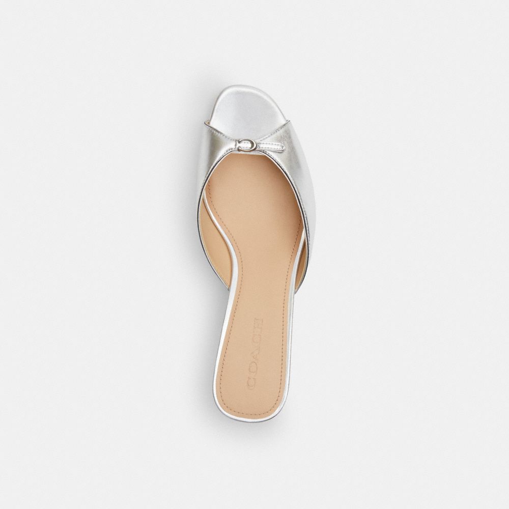 A sleek sandal to dress up or down, this elegant open-toe kitten heel design is crafted of smooth high-shine metallic leather. The slip-on silhouette is finished with our tonal Signature hardware for a subtle heritage touch.