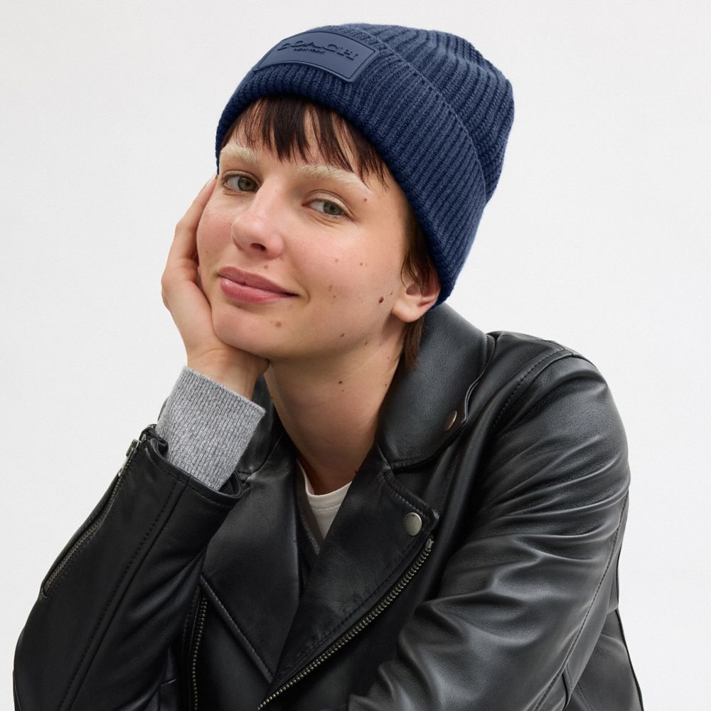 Knit Beanie With Rubber Patch