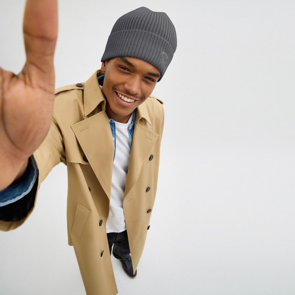 A sporty style, this ribbed knit beanie is crafted of a supersoft cashmere and wool-blend. The cozy cold weather essential is embroidered with our Signature for heritage touch.