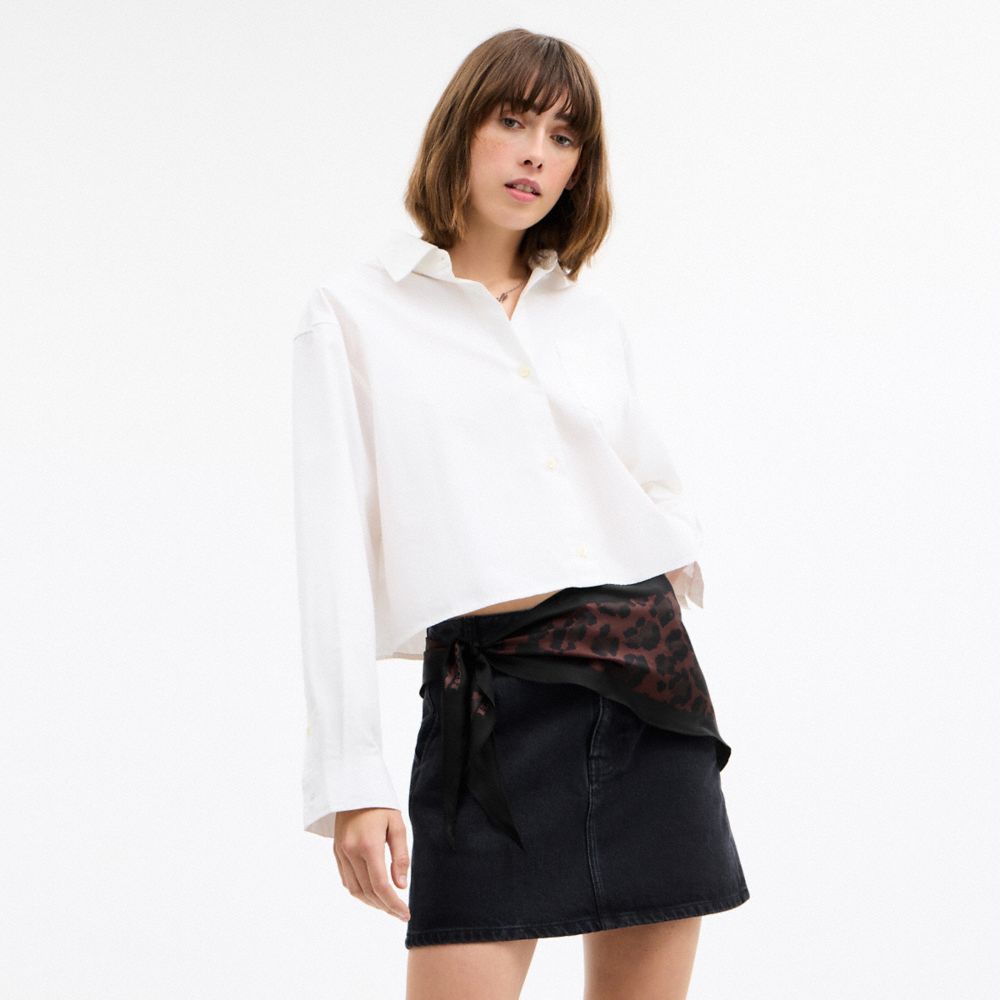 A surefire way to get spotted, this lightweight silk triangle scarf features a bold leopard print. Finished with a solid border, tie it around your shoulders or on a favorite bag to add a fierce touch to any look.