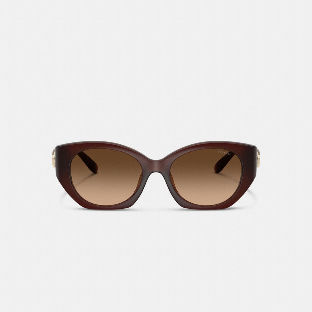 A luxe design, these square cat eye sunglasses are finished with our oversized polished C hardware wrapped around the temple for bold heritage style. Featuring 100% UV protection lenses, the sleek style comes packaged in a Coach case with a microfiber cleaning cloth.