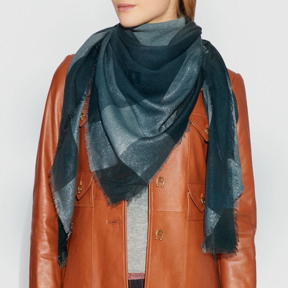 Soft and lightweight, this Challis Scarf shimmers with subtle Lurex threads. Wear it as a cozy shawl or a bold scarf.