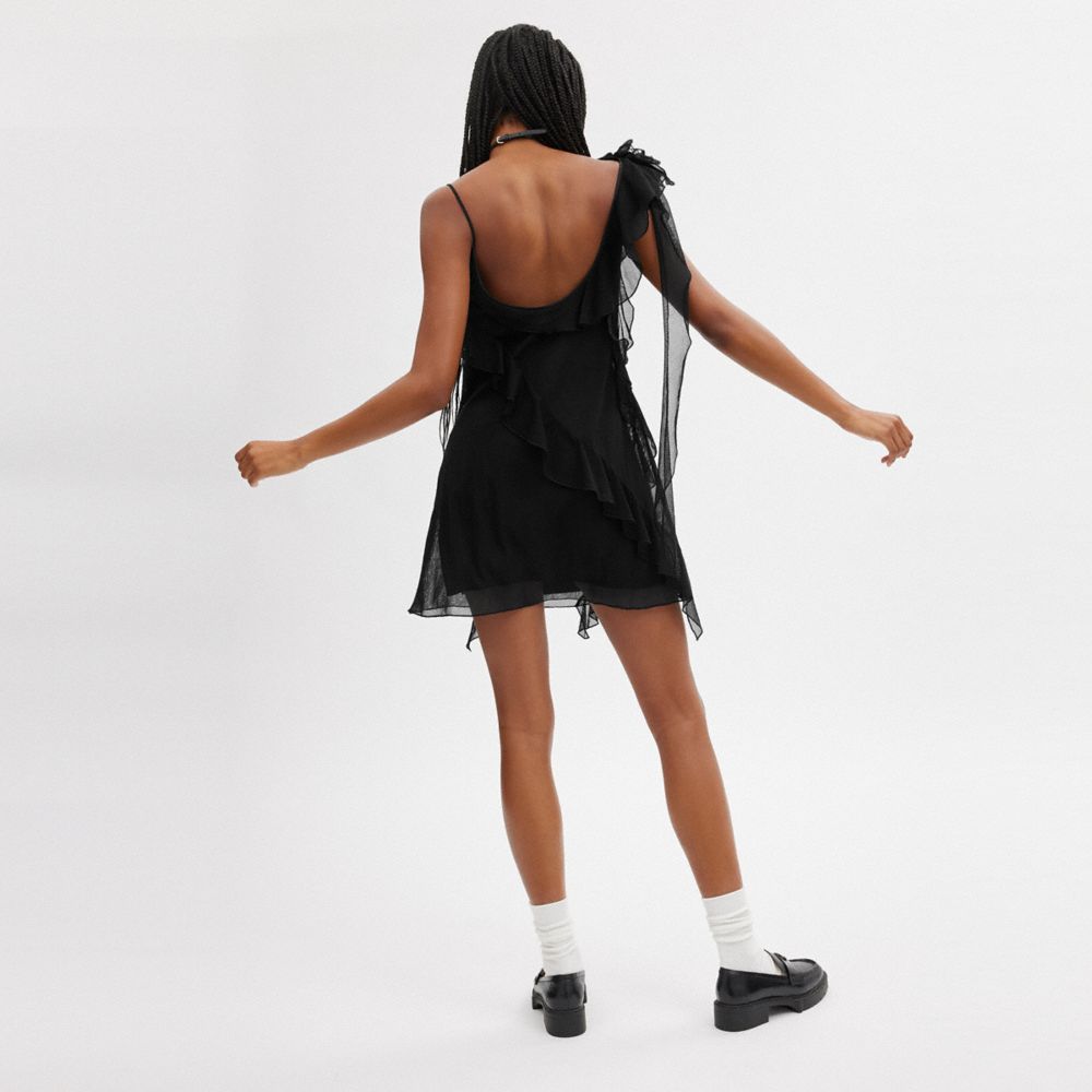 A romantic party-ready style, this tulle mini dress features a sparkling sequin rosette detail and airy cascading ruffles. The dreamy design is finished with camisole straps and a deep scoop back for a feminine finish.