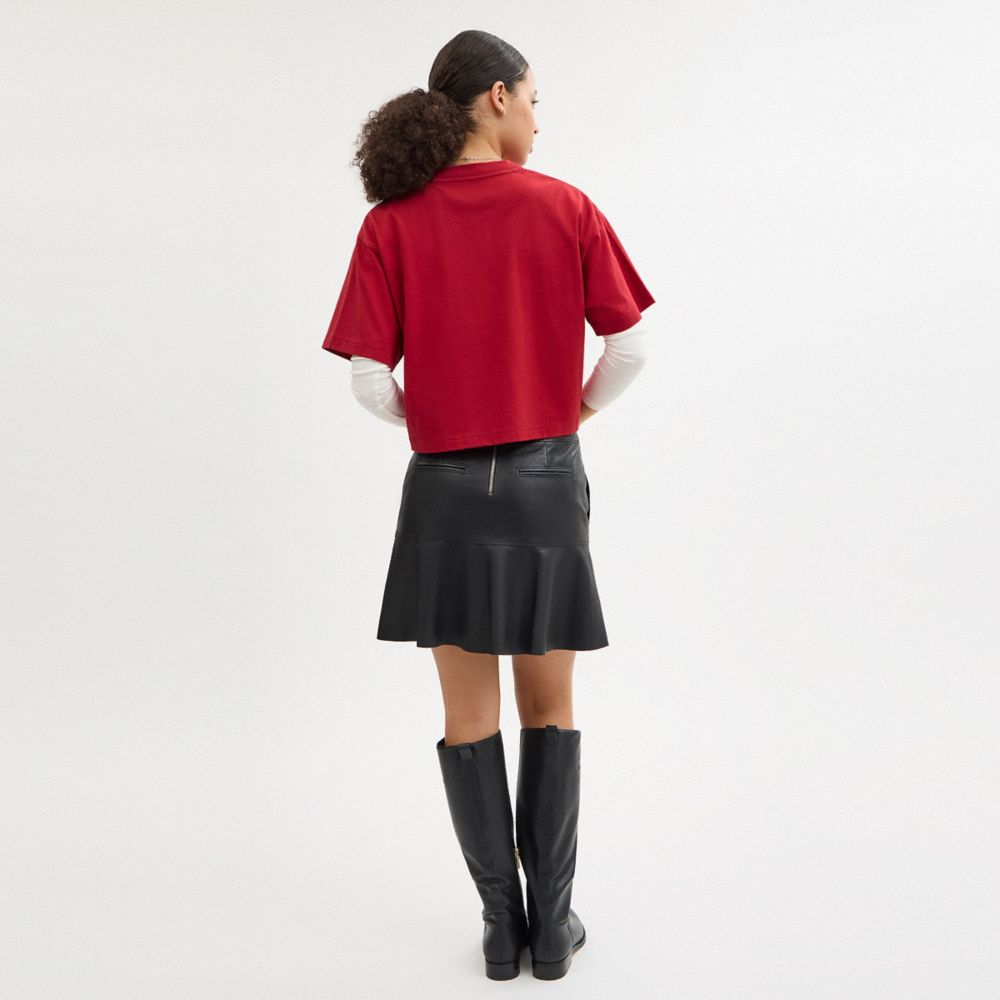 Celebrate 2025 Year of the Snake with our special New Year collection. Crafted of organic cotton made without the use of harmful chemical fertilizers and pesticides, this cropped T-shirt features our cursive Coach script with a serpentine twist. The boxy silhouette features a comfortable, easy-to-wear dropped shoulder.