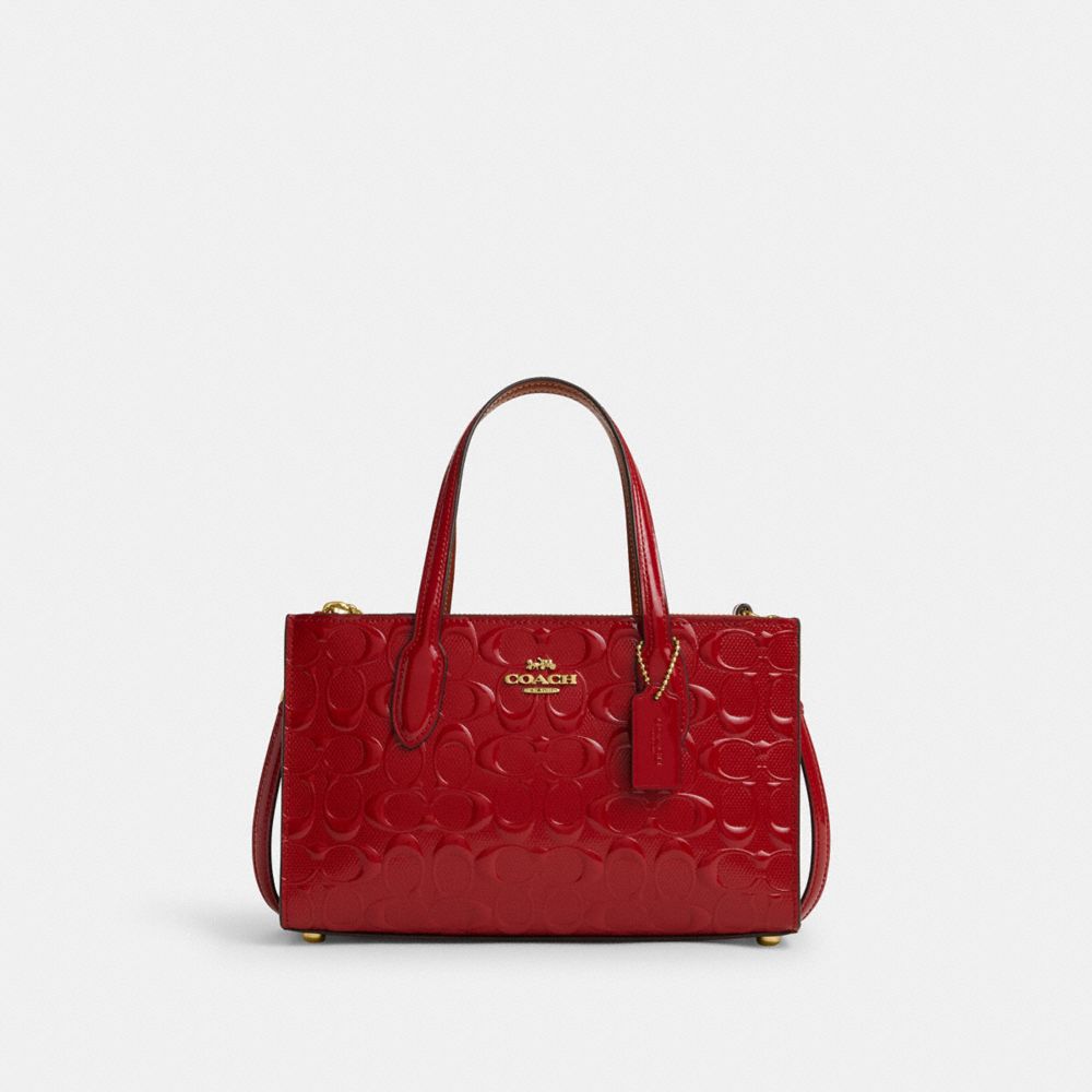 A reliable yet fashionable carryall, the Nina Small Tote Bag In Signature Leather is crafted of Signature patent leather and smooth leather with a fabric lining. Durable and designed to keep up with you, its compact size is ideal for carrying essentials without weighing you down.