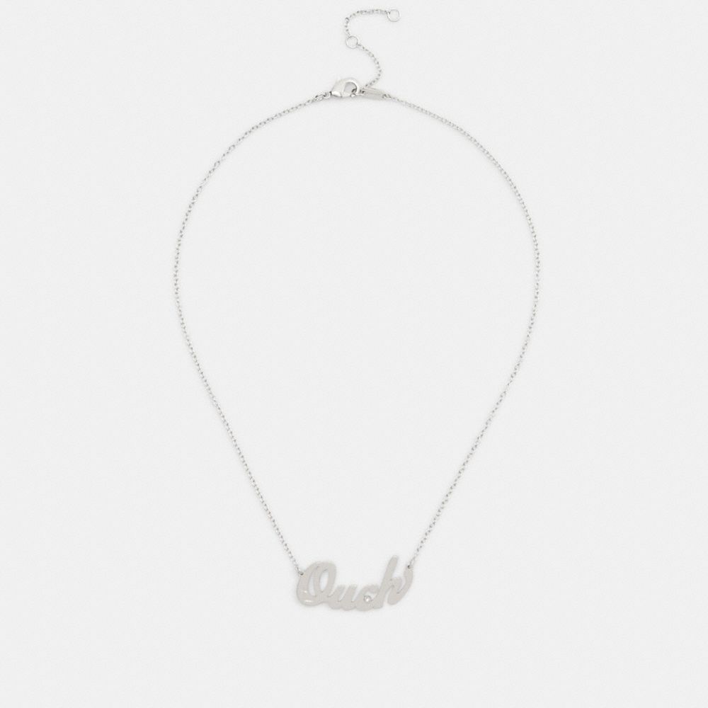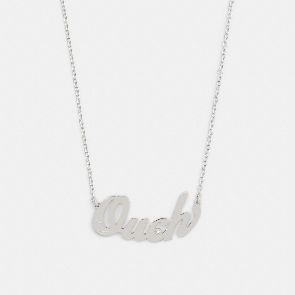 A playful take on our name, this nameplate chain necklace features “Ouch” written in our cursive script. Detailed with a sparkling crystal, it’s finished with an adjustable clasp closure to wear long or short.