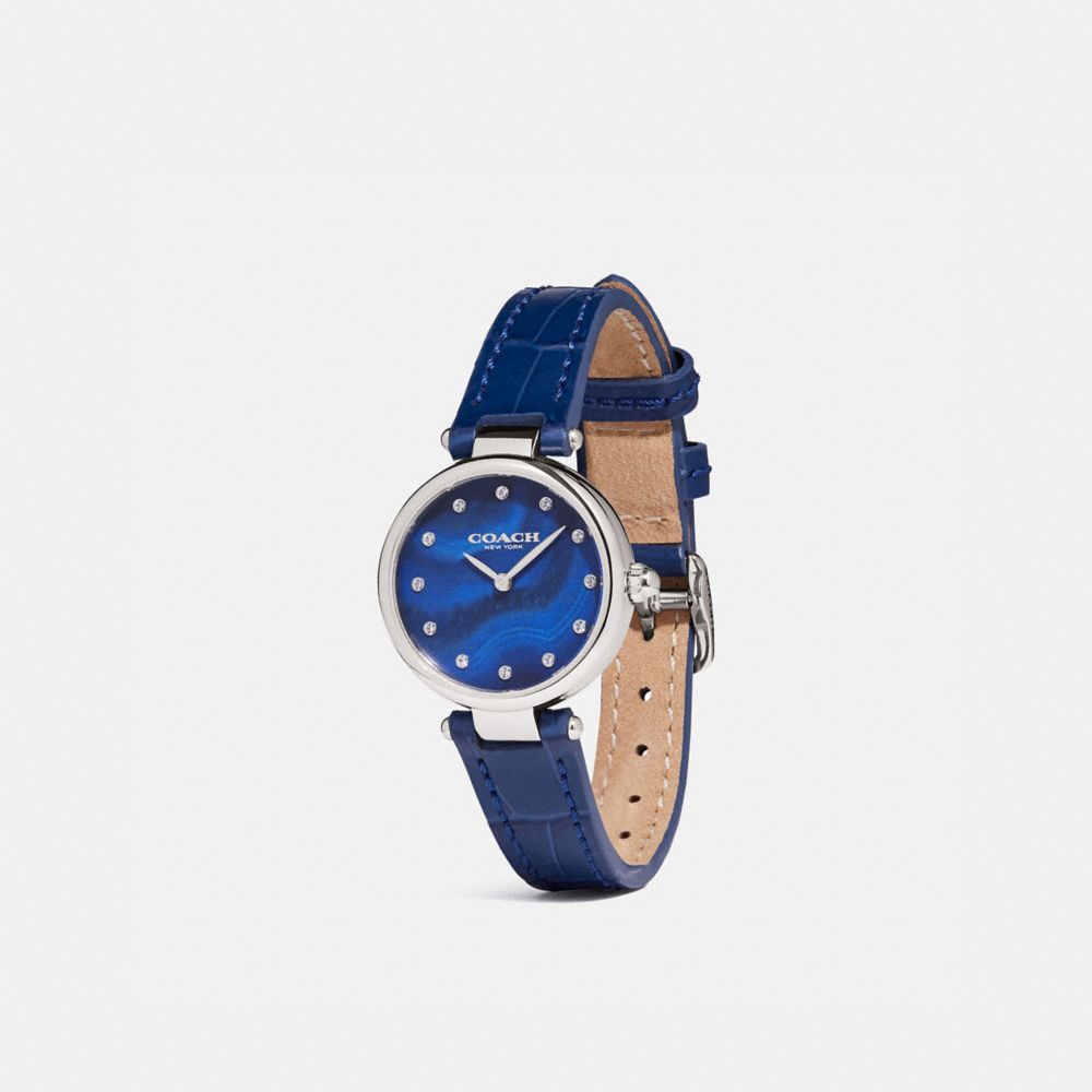 Named for the glamorous New York City street, the Park watch is an elegant style perfect for day or night. Sparkling with shimmering crystal markers, this round-face design features a printed dial and crocodile-embossed leather strap.