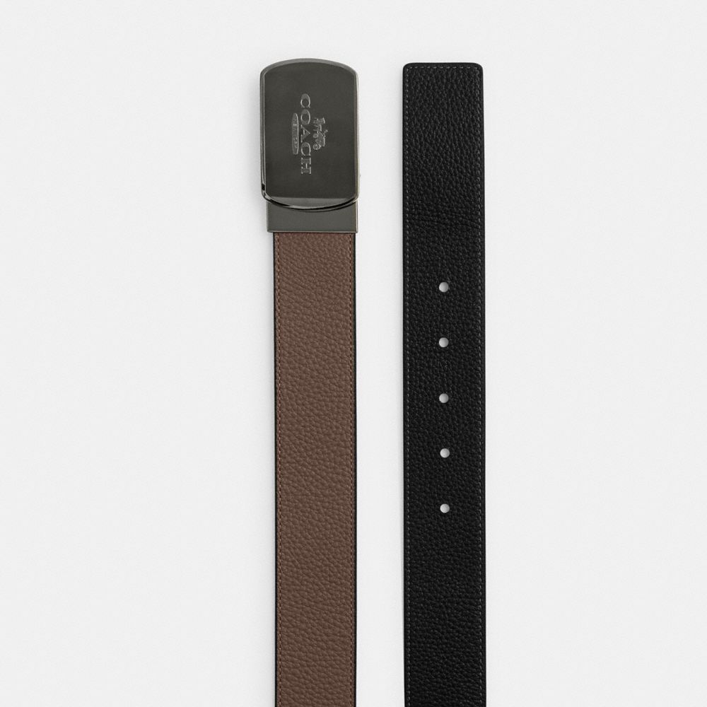COACH®,Plaque Buckle Cut-To-Size Reversible Belt, 38 Mm,Leather,Standard,Logo,Word Embellishment,Reversible,Casual,Brown,Front View