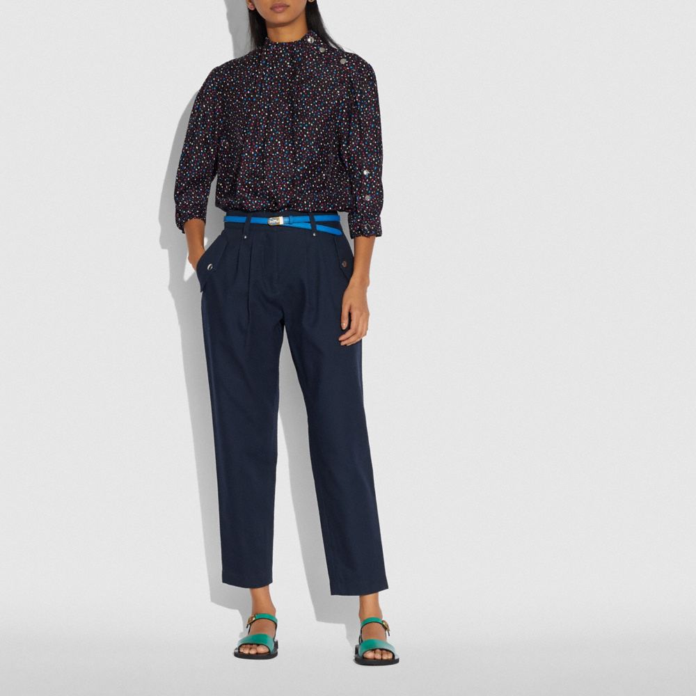 Add retro-cool style to your look with our pleated, high-waisted cotton trousers. Tapered for a slimmer fit, they’re finished with side snap pockets and polished rivets.