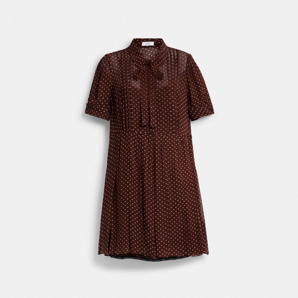 A lot to love. Featuring a sweet micro-heart print and perfectly placed pleats for playful movement, this slightly sheer shirt dress is inspired by vintage silhouettes. Detailed with our embroidered C at the waist for a subtle heritage touch, it’s finished with puffed short sleeves, a removable necktie and slip.