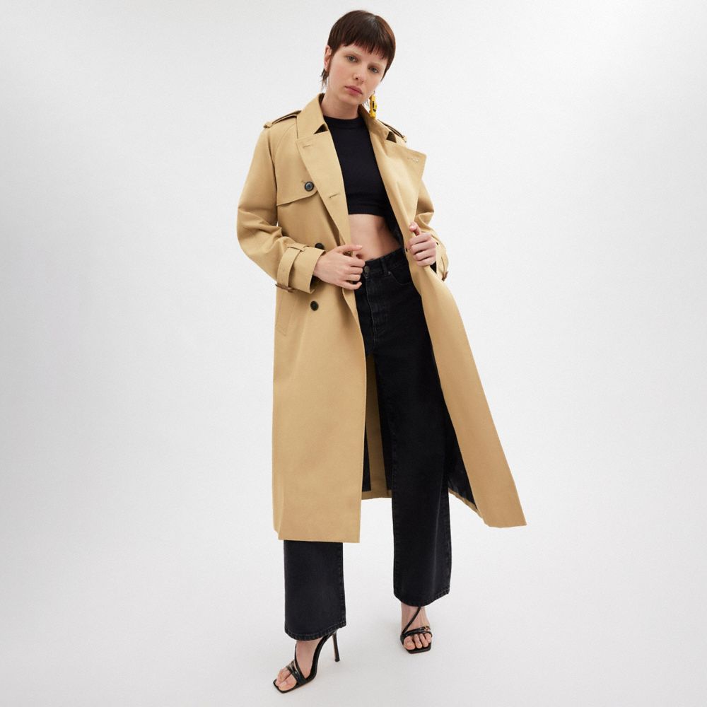 A modern update to a timeless silhouette, this lightweight cotton-blend trench is designed with a relaxed fit for easy, comfortable wear. Featuring our Heritage C Plaque at the epaulettes and leather buckles for an iconic Coach touch, the double-breasted topper is finished with a storm flap, an adjustable belt at the waist, belted cuffs and a back vent for ease of movement.