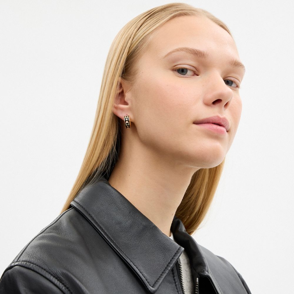 These delicate enamel hoop earrings hug the earlobe for an elegant minimalist look. Perfect for every day, they feature our Signature for iconic Coach style.
