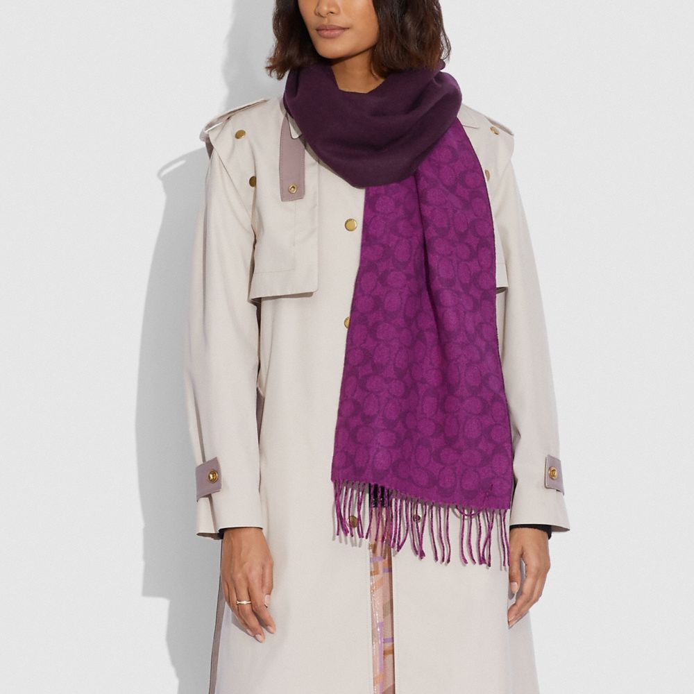 This soft muffler features our Signature on one side and reverses to a solid on the other. Crafted of luxurious cashmere, it's finished with delicate fringe trim.