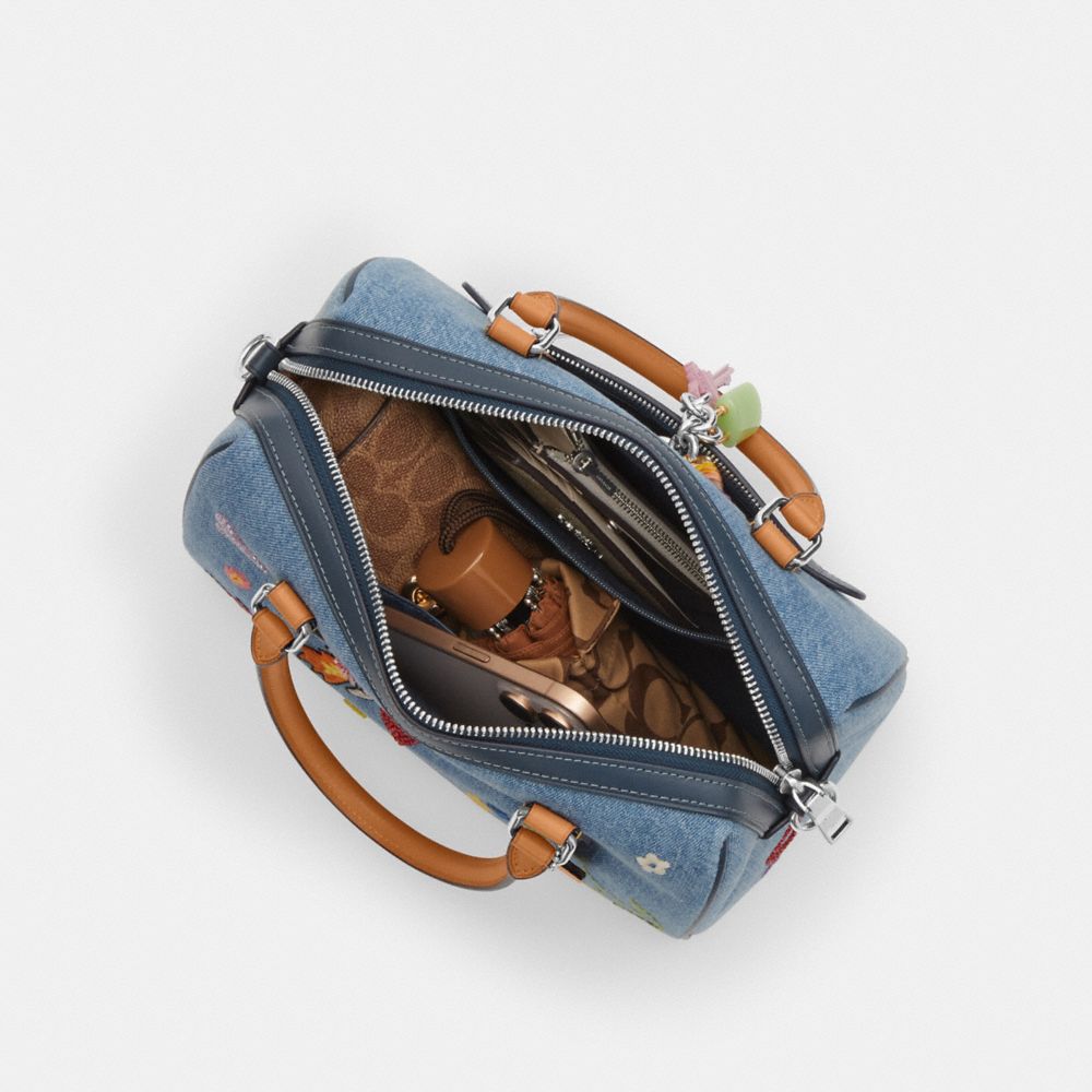 Rowan Satchel Bag In Signature Denim With Patches And Embroidery