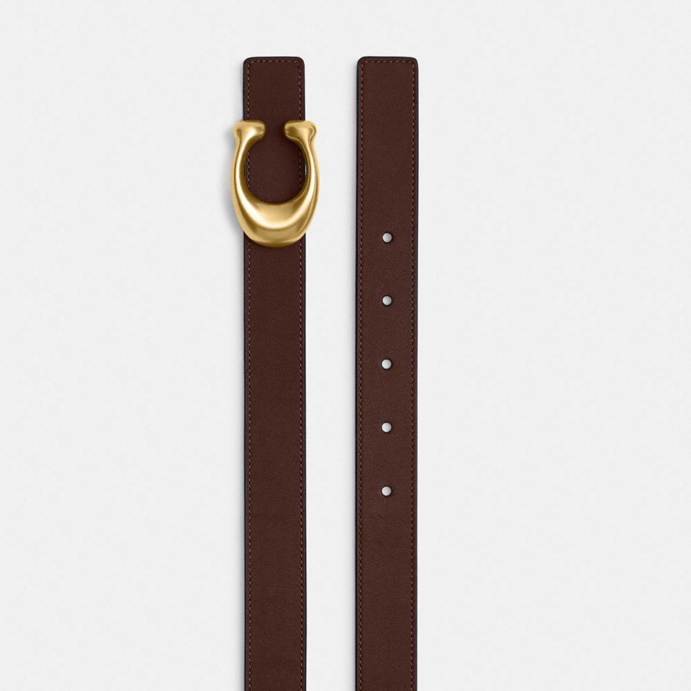 COACH®,Sculpted C Buckle Reversible Belt, 25 Mm,Leather,Standard,Metal Material,Logo,Metal,Reversible,Brass Gold,Day Party,Brown,Angle View