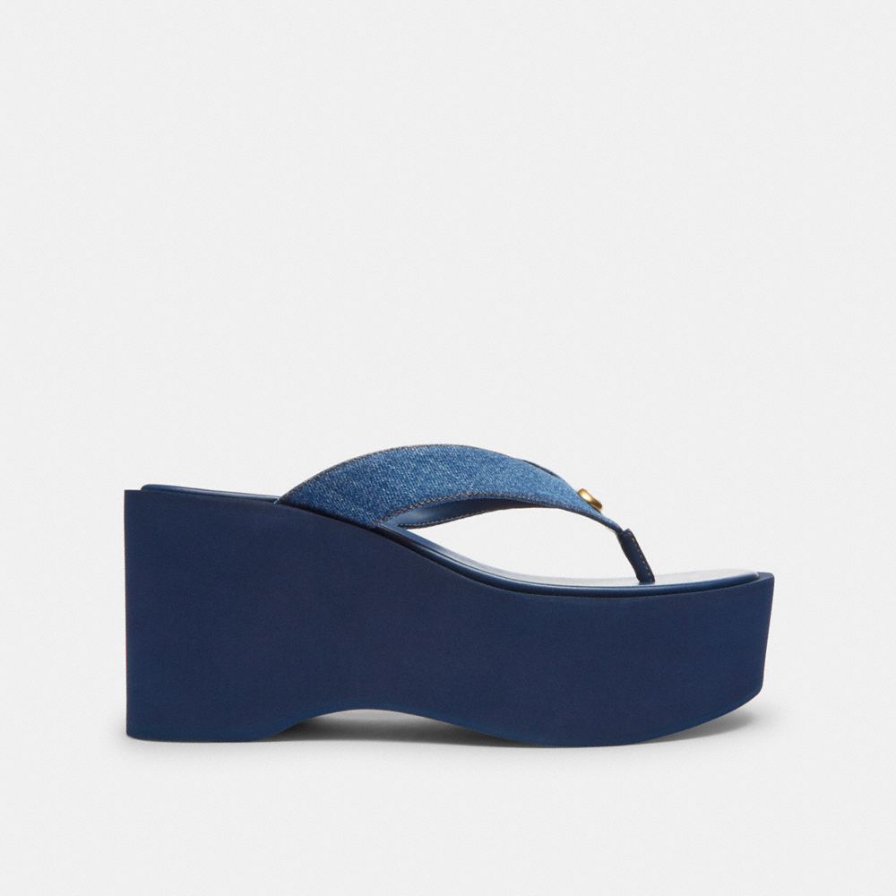 A stand-out style, this denim platform flip flop is a retro-inspired design detailed with our tonal sculpted C hardware. The slip-on thong sandal is finished with a padded footbed and rubber outsole for added traction.