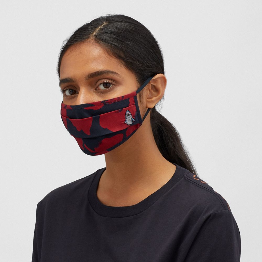 Take care of yourself, and each other. Our non-medical grade, washable reusable face mask is crafted from a double layer of breathable soft cotton. Printed with our vibrant wildflower motif, it's embroidered with our more fun than ferocious Sharky. The comfortable, secure elastic ear loops adjust with a rubber stopper for the perfect fit.