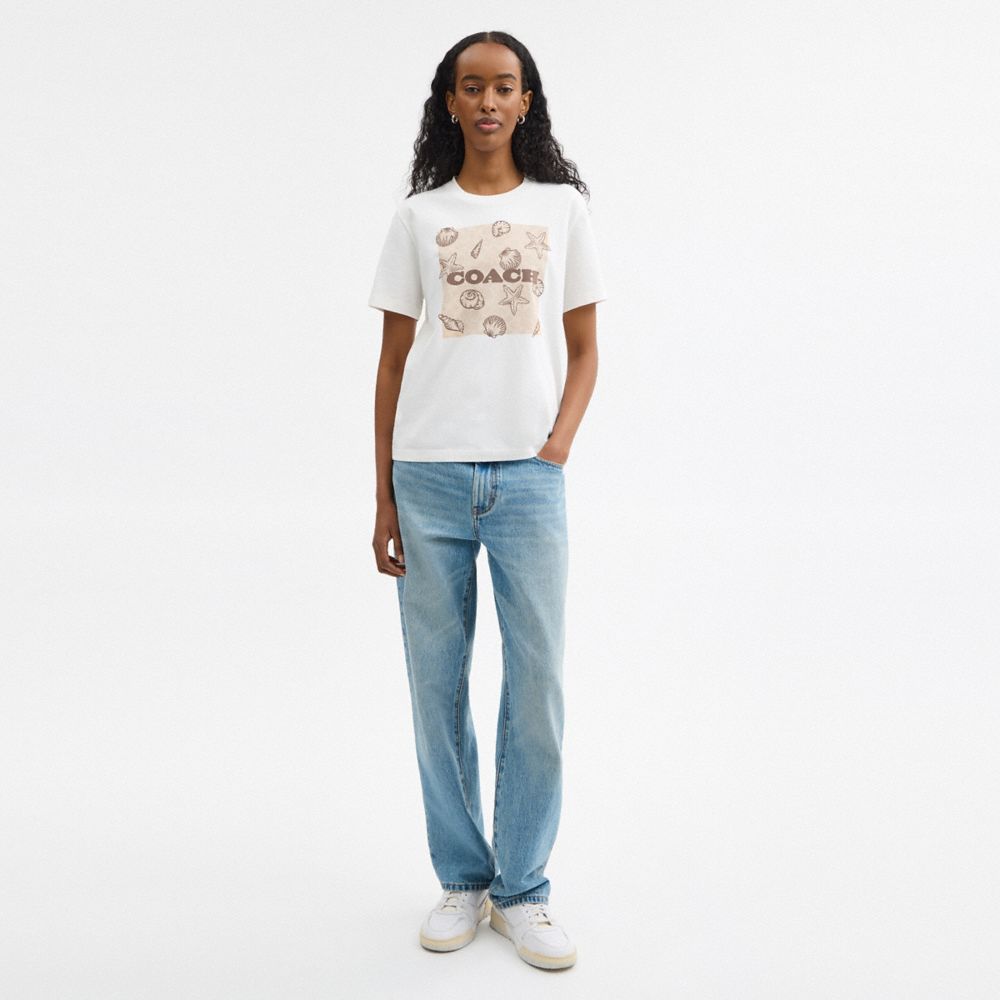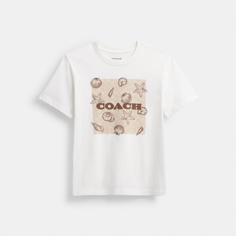 COACH®,Shell Signature Square Classic T-Shirt In Organic Cotton,Organic Cotton,T Shirt,Casual,White,Scale View