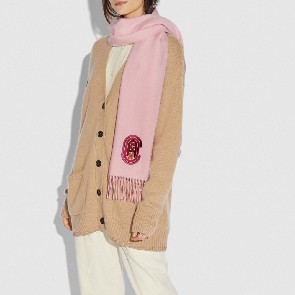 This knit muffler is embroidered with our Coach retro graphic for a sporty finish. It’s crafted in a super soft blend of wool and cashmere finished with delicate fringe trim.
