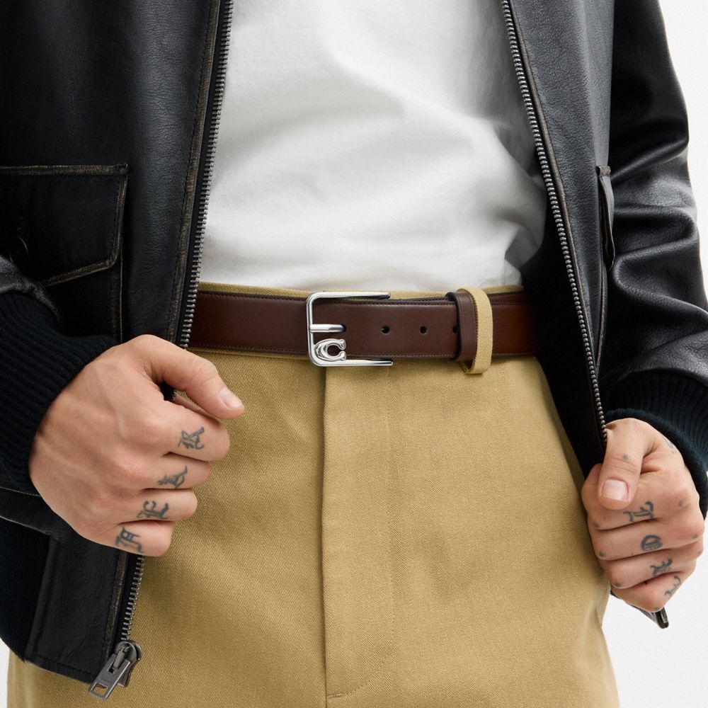 COACH®,Signature Harness Buckle Belt, 35 Mm,,Detail View