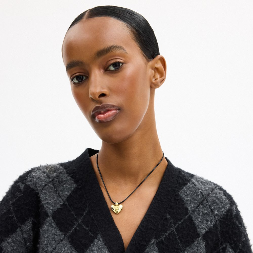 Show some love. Featuring our Signature heart pendant accented with shimmering crystals, the cord necklace is finished with an adjustable clasp closure.