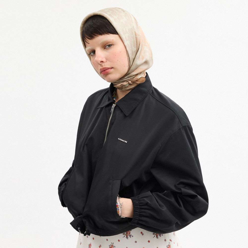 COACH®,Signature Horse And Carriage Print Silk Square Scarf,Silk,Bandana,Color Block,Stripe,Casual,Cream,Detail View
