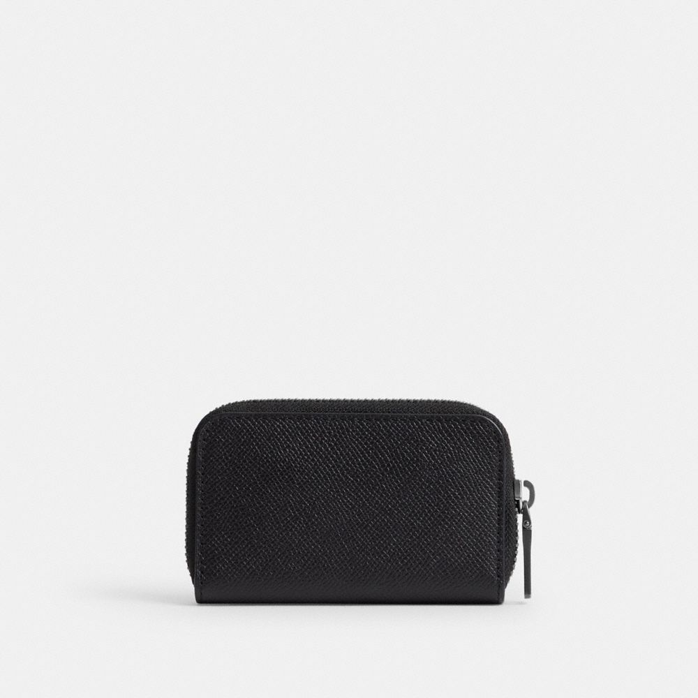 A modern minimalist design, this convenient small card case is crafted of durable, scratch-resistant crossgrain leather. Finished with our Signature hardware, the slim style unzips to reveal three card slots and two open pockets with space for cash, coins, receipts and wireless earbuds or small accessories.