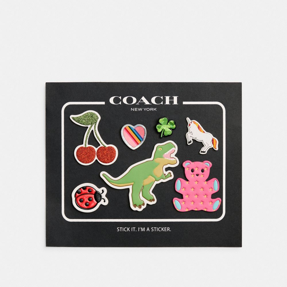 A playful way to express yourself, this smooth leather sticker set features a bright collection of whimsical Coach motifs.