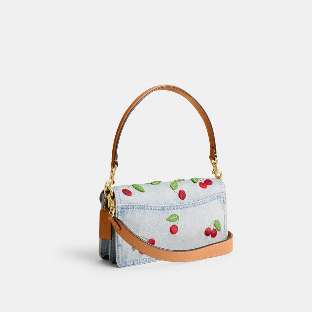 COACH®,Tabby Shoulder Bag 26 With Cherry Embroidery,Cotton,Denim,Leather,Shoulder Bag,Metal Material,Logo,Metal,Embroidere...,Gray,Angle View